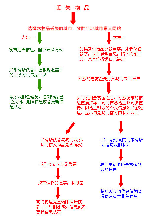 优点:方便快捷,由我们网站平台作为第三方责任担保,您的信息完全保密。我们对您的信息进行推荐置顶,在全国总站上做全方位同步宣传,同时由于有悬赏金,拾获者会加快主动与我们联系,让您能在最快的时间内找回您遗失的物品。